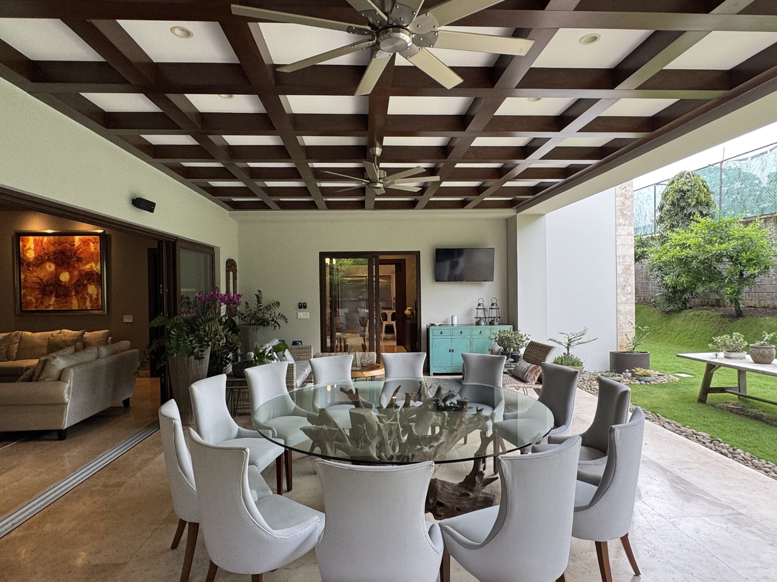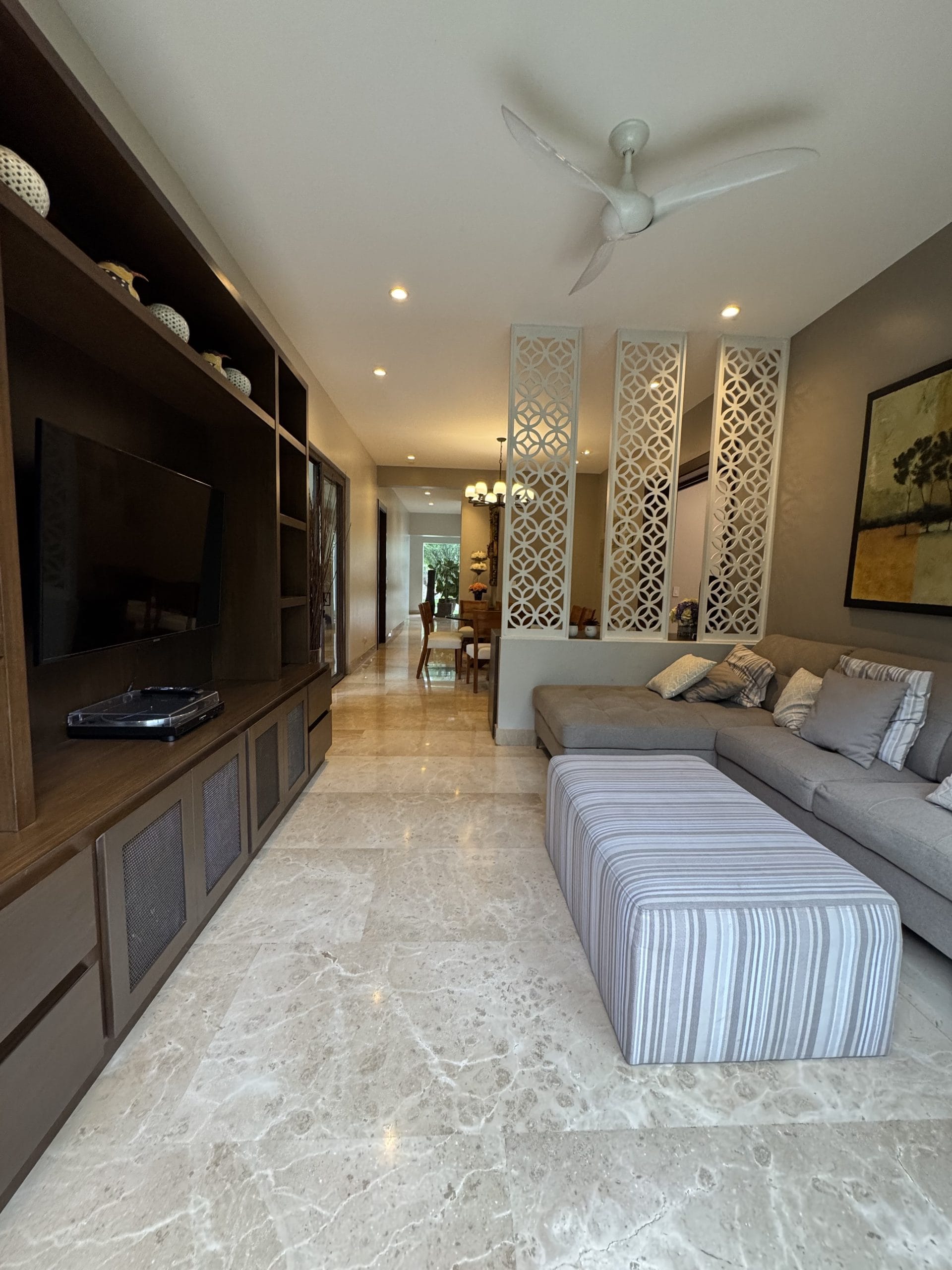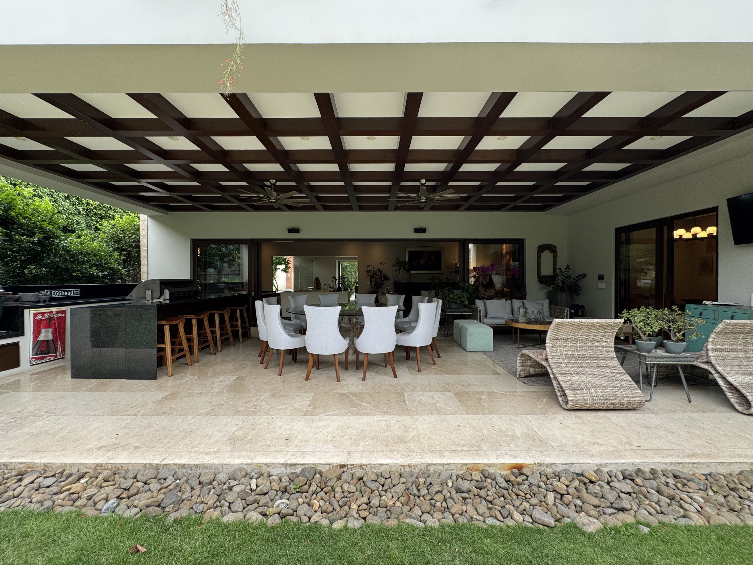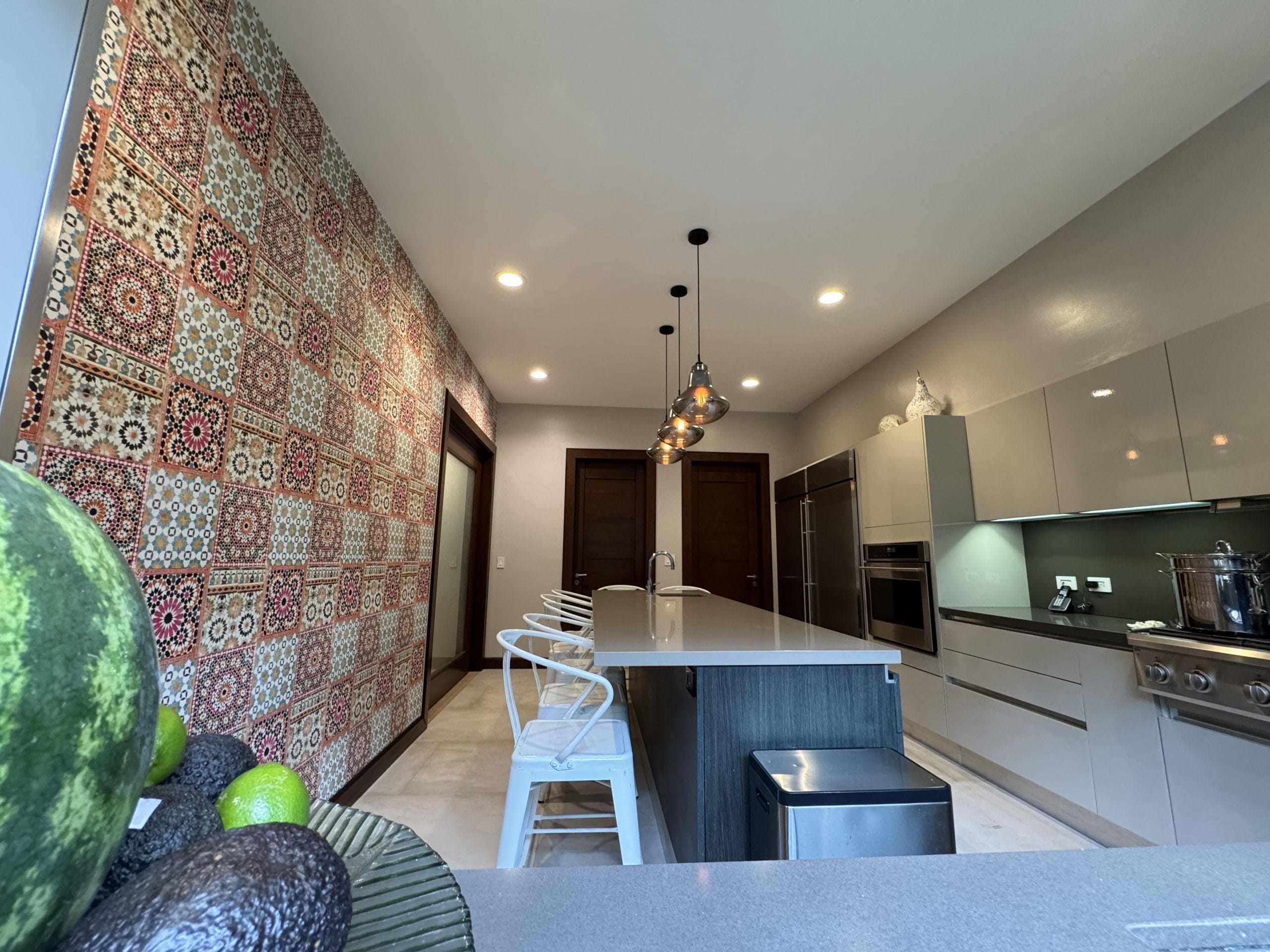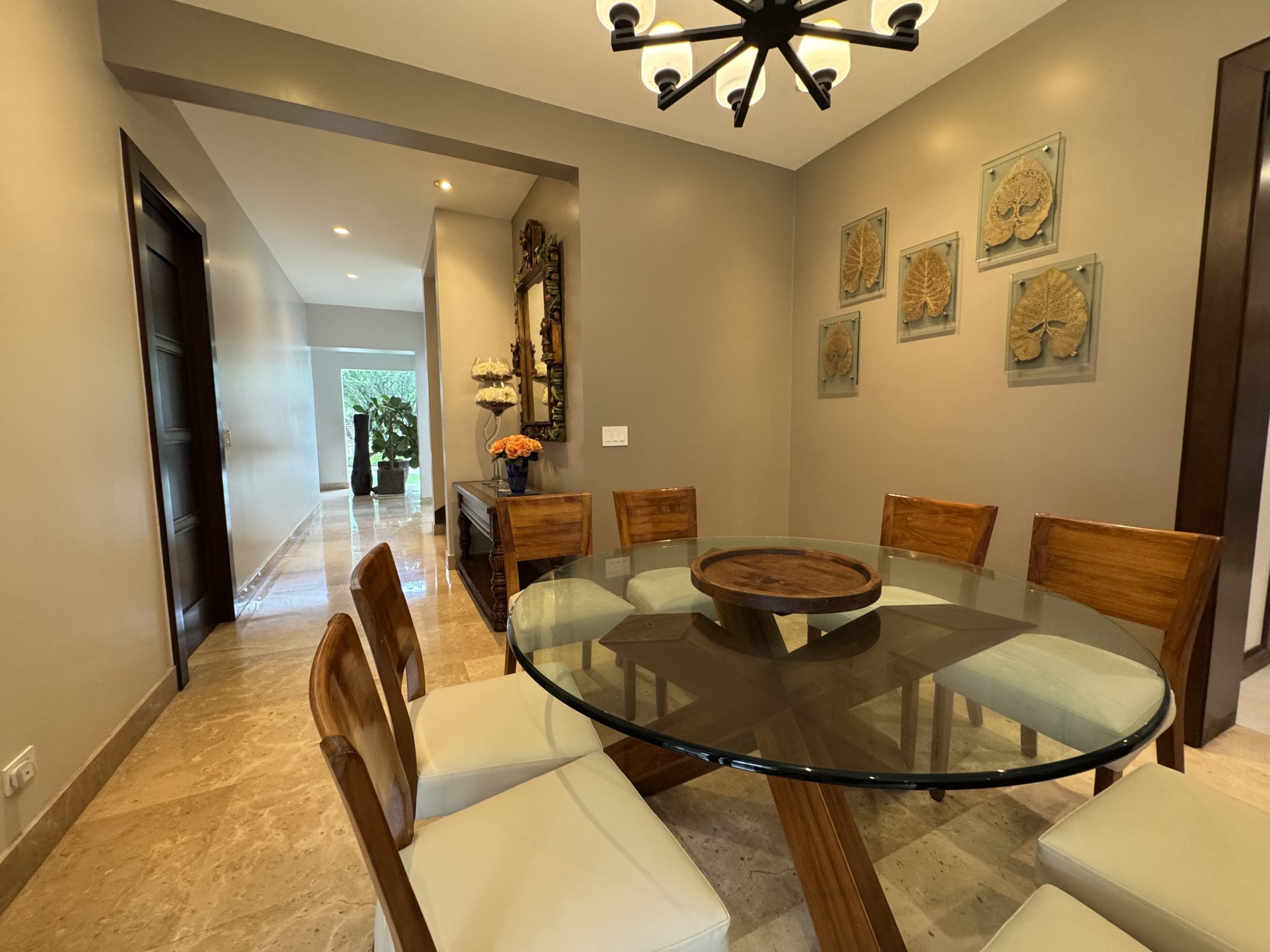 The house features a spacious maid’s room with its own full bathroom, as well as a half bathroom conveniently located near the garage.