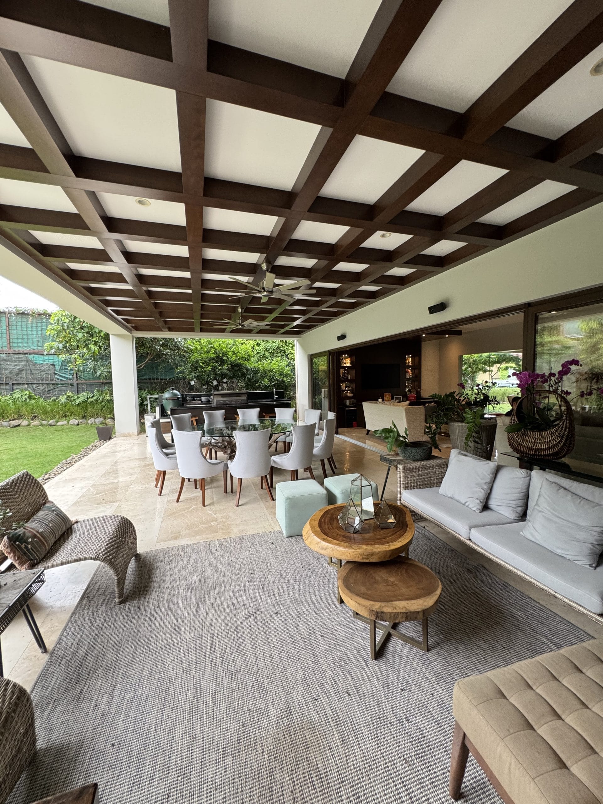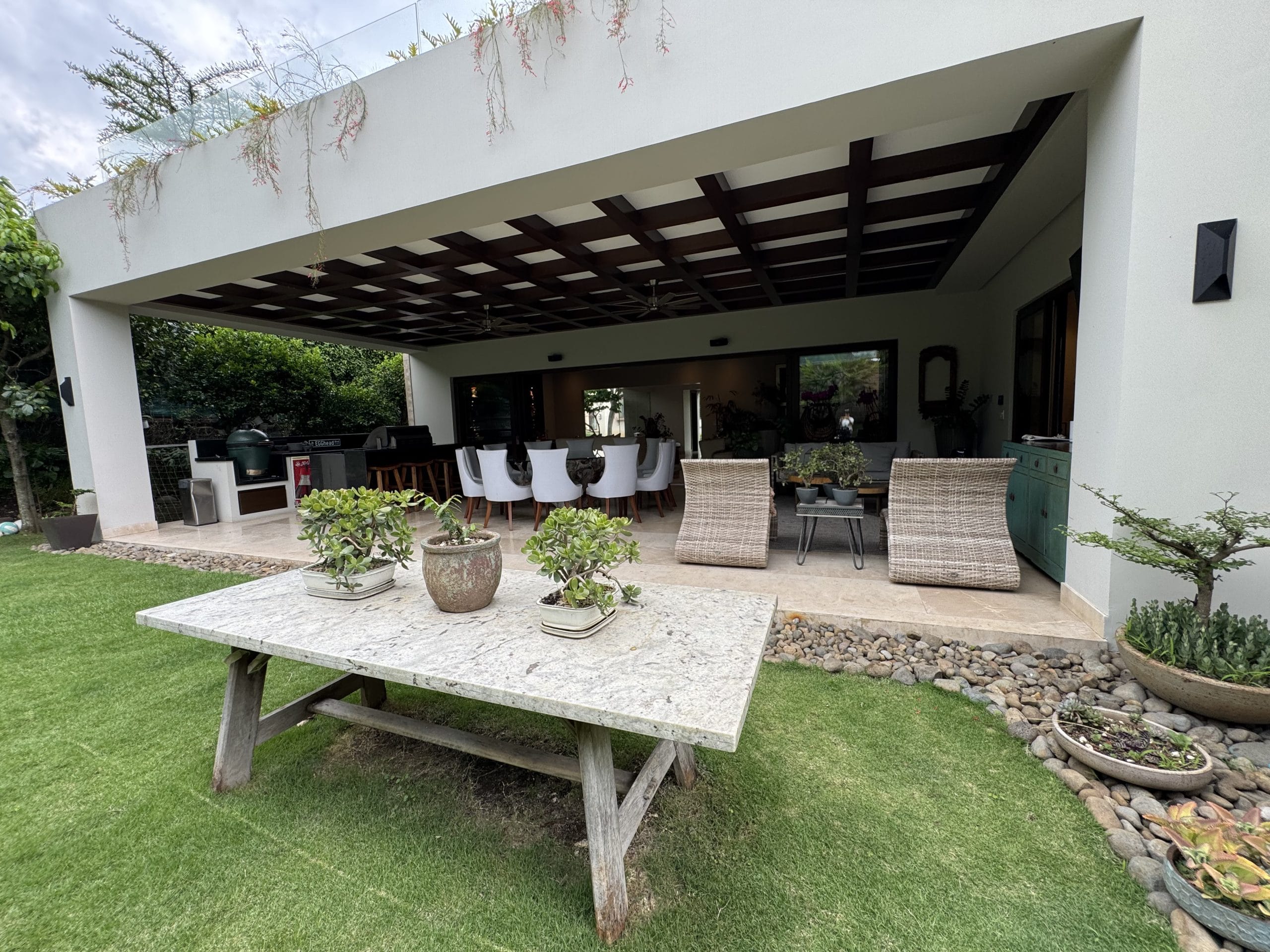 One of the home’s most special features is a private 70 m² rooftop terrace on the second floor, which includes a beautifully maintained garden with natural grass underfoot.